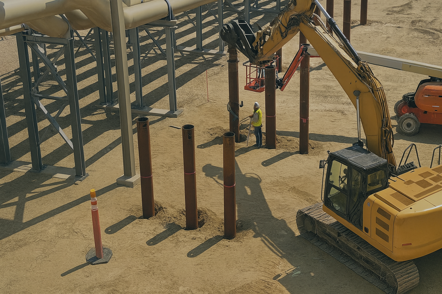 Études, dimensionnements et suivis d’exécution d’ouvrages industriels : massifs, plateformes, réseaux enterrés et infrastructures de site.